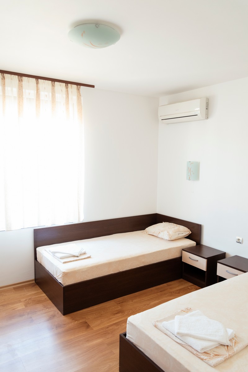 разполага с три двойни стаи, осем тройни стаи, две тройни стаи + разтегателен диван.